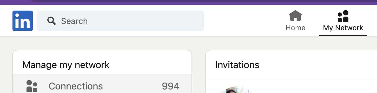 Click on “My Network” on the top menu and then select “Connections”